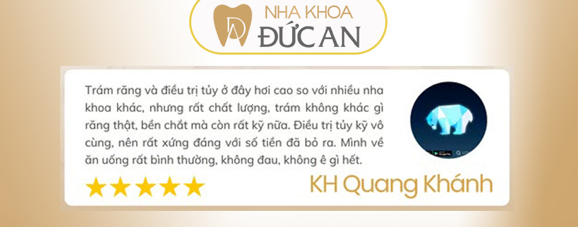 “Chi phí điều trị tủy và trám răng ở đây có cao hơn vài nơi, nhưng thật sự rất xứng đáng. Răng trám nhìn như răng thật, bền chắc và làm vô cùng kỹ. Điều trị tủy cũng rất cẩn thận, nhẹ nhàng. Sau khi làm xong mình ăn uống bình thường, không đau không ê gì hết.” Chia sẻ thật lòng từ anh Quang Khánh